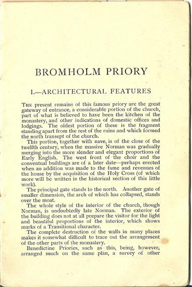 In this present age, when thinking people are turning attention to the traditions of the past as a great help to our artistic sense, special note may well be made of the architectural beauty of the ruins of old priories and other religious houses scattered about England, amongst which Bromholm Priory holds high place, both from an historical as well as an architectural standpoint.