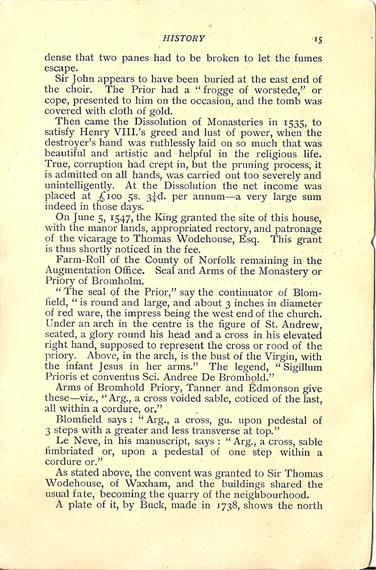 As stated above, the convent was granted to Sir Thomas Wodehouse, of Waxham, and the buildings shared the usual fate, becoming the quarry of the neighbourhood.