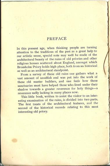 In this present age, when thinking people are turning attention to the traditions of the past as a great help to our artistic sense, special note may well be made of the architectural beauty of the ruins of old priories and other religious houses scattered about England, amongst which Bromholm Priory holds high place, both from an historical as well as an architectural standpoint.