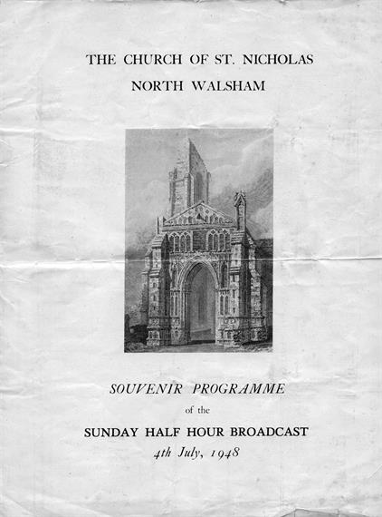 Souvenir programme from the "Sunday Half Hour Broadcast" on 4th July 1948 from St Nicholas' Church in North Walsham....