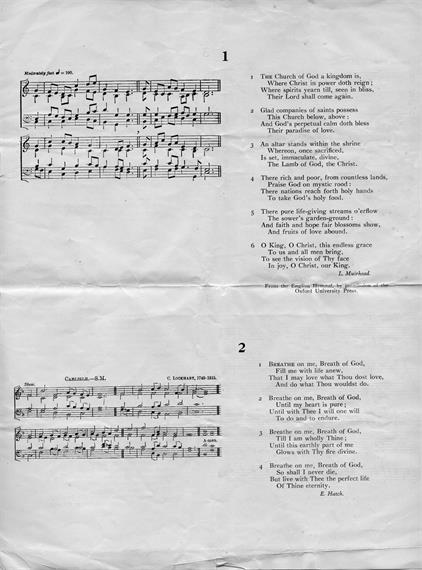 If you are unable to come and sing in the Church, then join us in singing at home. All the hymns we are having are worth singing, even though some of them are not so well known as they deserve to be. When the broadcast is over perhaps you might like to send your programme to a friend who lives overseas, so that they in their turn may listen when the Half Hour is re-broadcast to overseas listeners on 5th September. The profits from the sale of these programmes will be devoted to our Church Warming Fund. Our Church is large and very cold in the winter, and we need a new heating system badly.